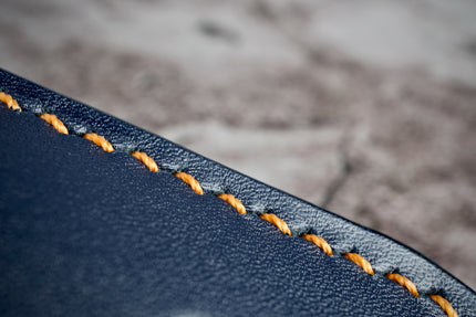Crafted from full-grain, vegetable-tanned leather in deep Indigo Blue and stitched entirely by hand with Vinymo MBT tear resistant thread, Niva Zoj is built to last years of use while forming a patina that reflects your path.